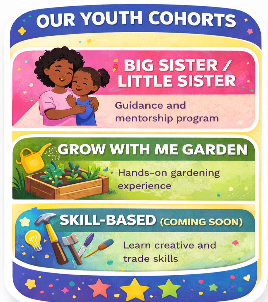 Building confidence, leadership, and real-life skills in youth through mentorship, structured cohorts, and hands-on experiences.🌱 Now enrolling for our youth programs and building our community garden initiative.